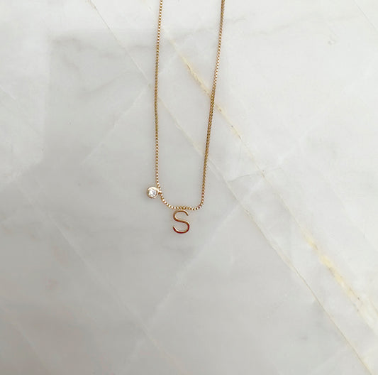 Colar Zircônia Branca Mini Letra S Banho a Ouro 18K