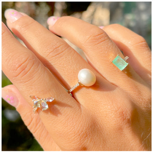 Anel Fusion Esmeralda Colombiana Pérola Cristal Topázio Azul