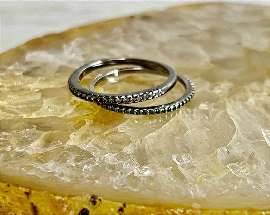 Anel Meia Aliança Par Zircônia Branca e Verde