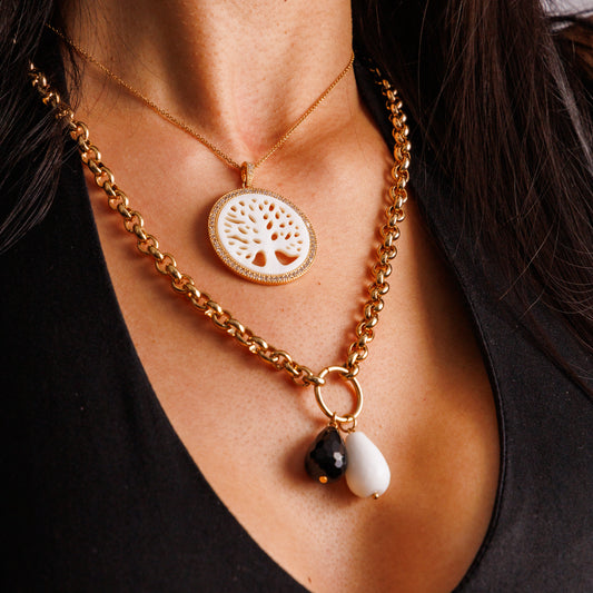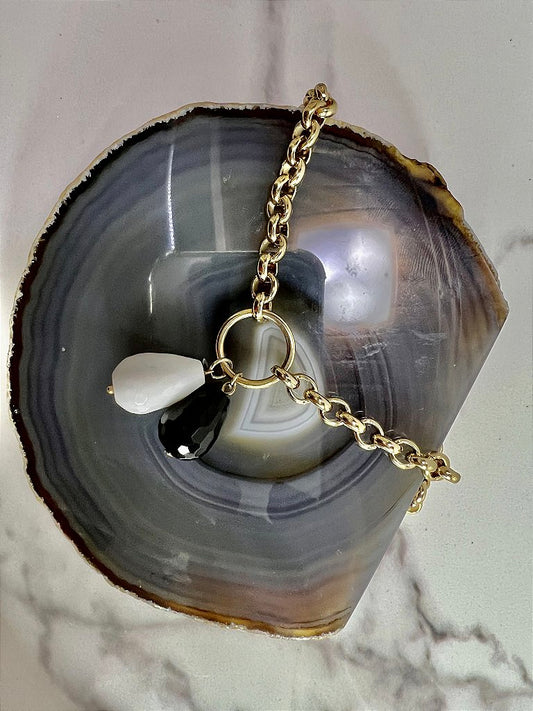 Colar Corrente Banho Ouro 18k Com Pingente Branco Preto