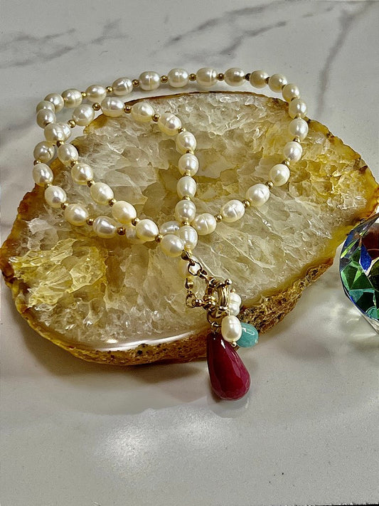 Colar Banho Ouro 18k Pérola Barroca Pingente Pink Verde