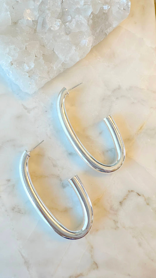 Brinco Argola Lisa Tubo Oval 6mm Banho de Prata