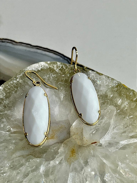 Brinco Banho Ouro 18k Com Quartzo Branco Oval