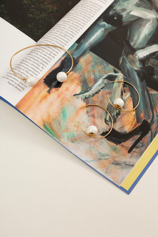 Conjunto Pulseira Bracelete e Brinco Pérola