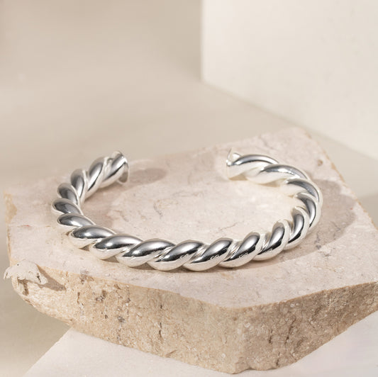 Pulseira Bracelete Liso Tubo Redondo Torcido 5 mm Banho de Prata