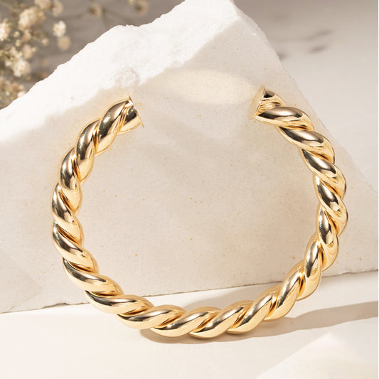 Pulseira Bracelete Liso Tubo Redondo Torcido 5 mm Banho de Ouro 18K