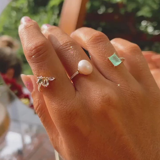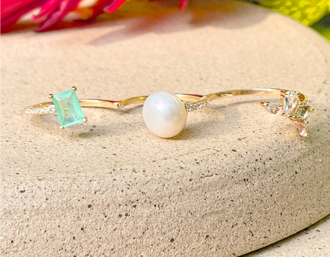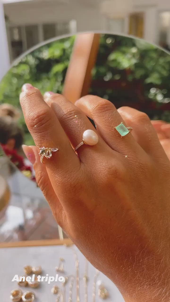 Anel Fusion Esmeralda Colombiana Pérola Cristal Topázio Azul