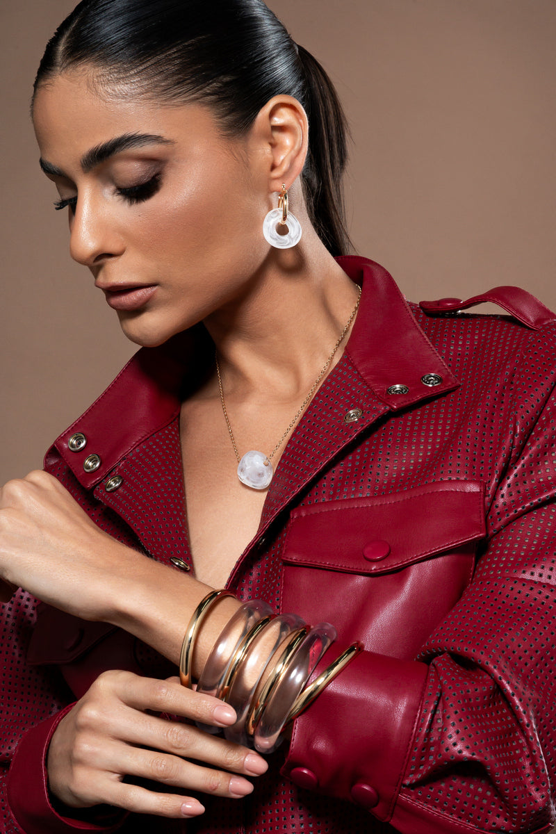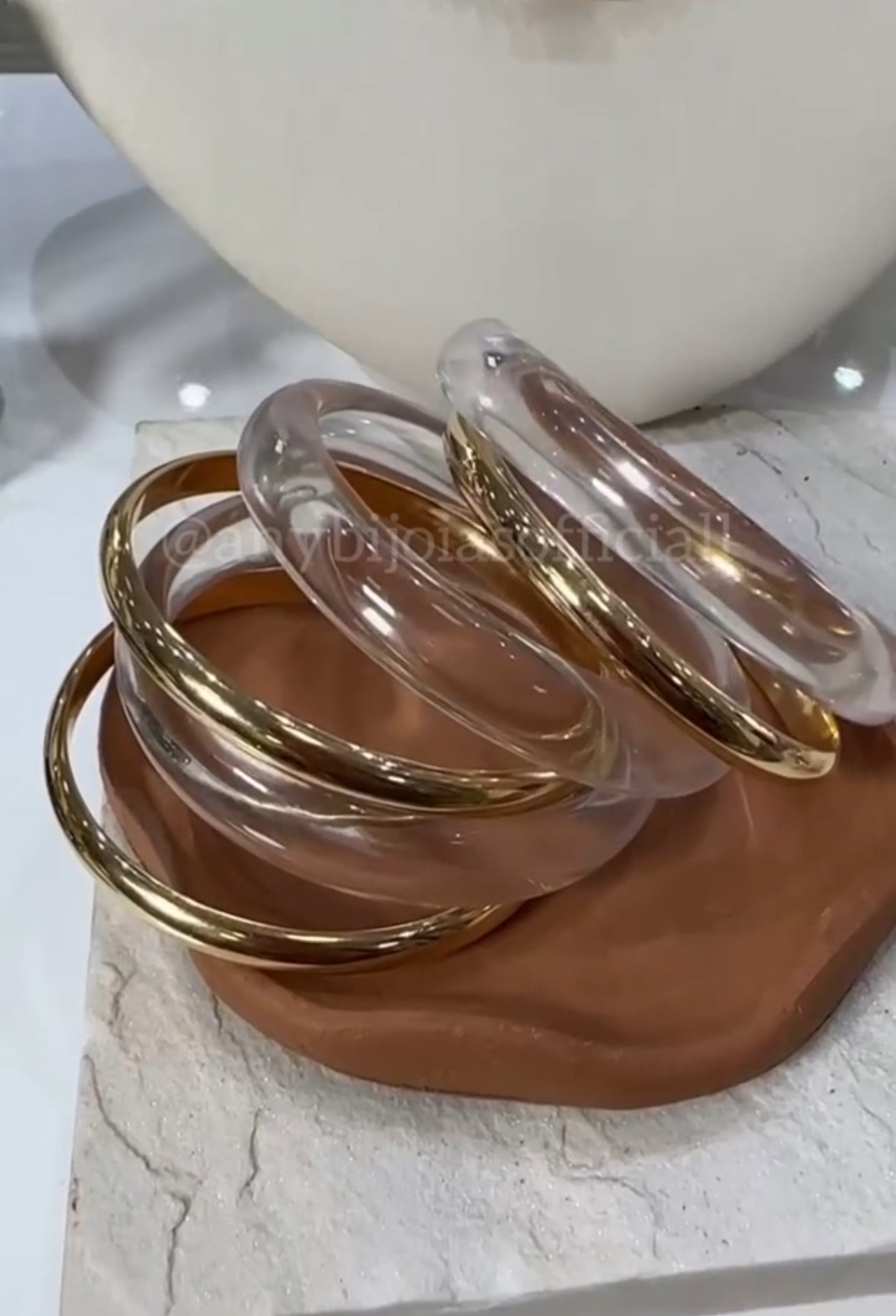 KIT 01 PULSEIRA BRACELETE RESINA TRANSPARENTE + 04 BRACELETES COM BANHO 18k