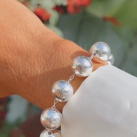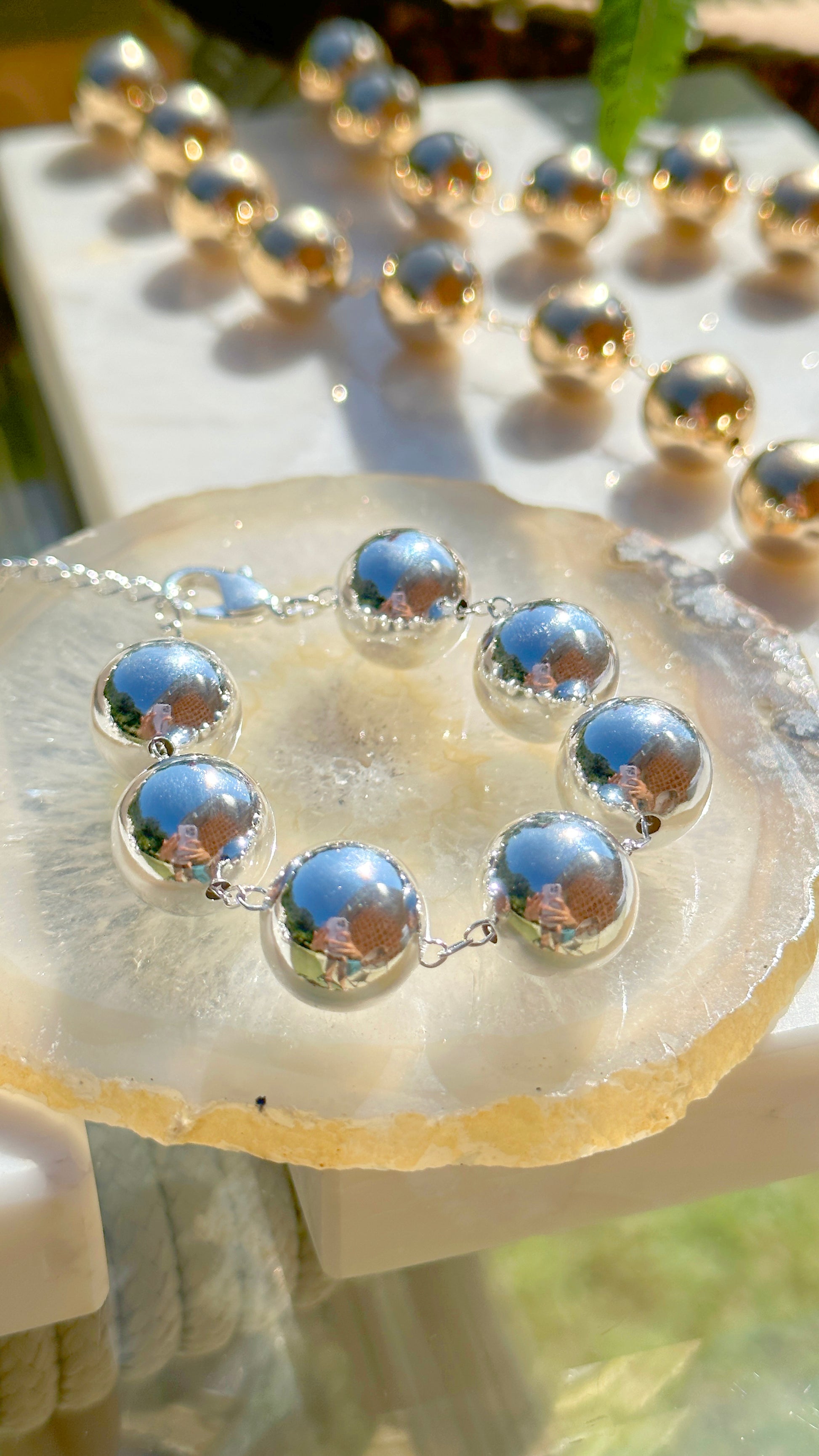 Pulseira Lisa Esferas 14mm 22cm Banho de Prata Nano Silver
